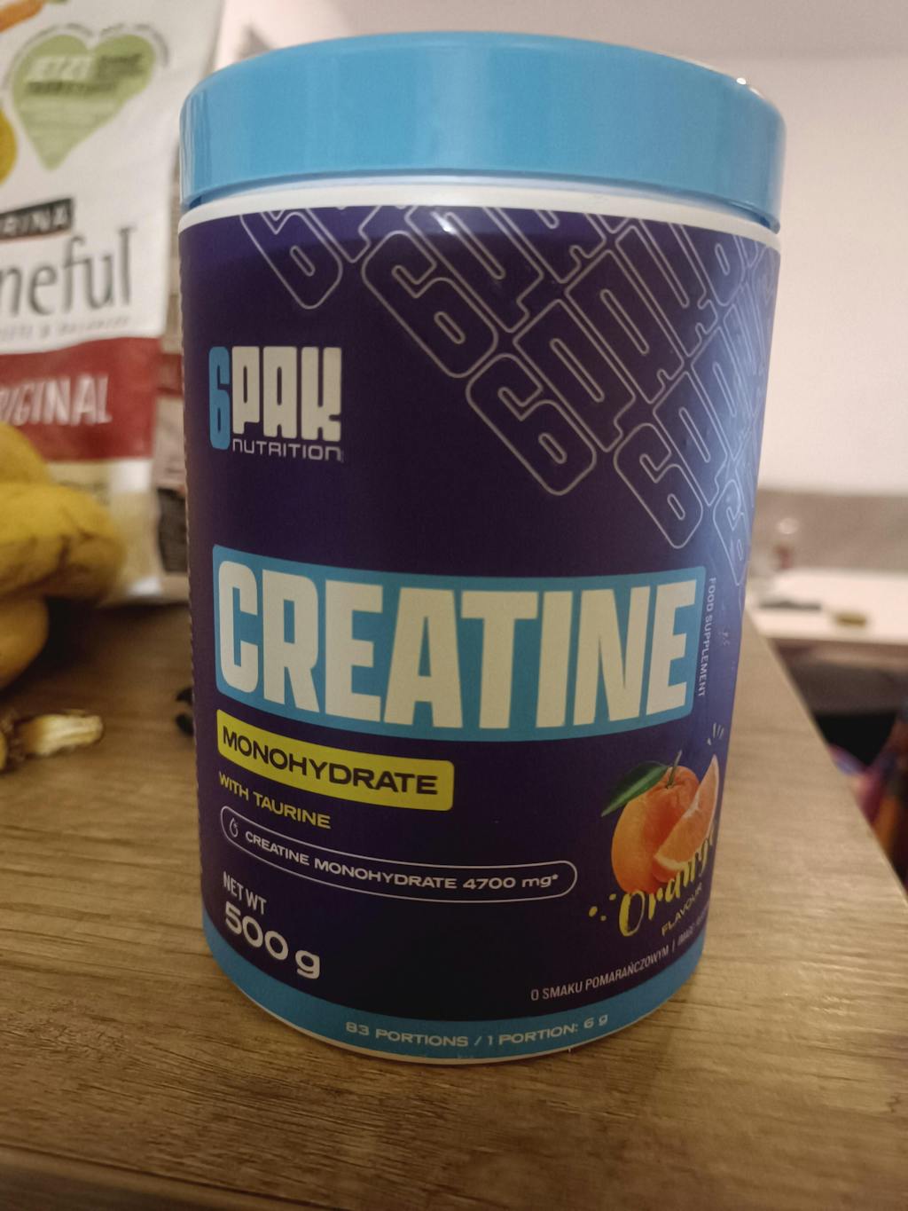 6PAK Kreatinmonohydrat er et kosttilskud af høj kvalitet, der er udviklet til at støtte personer, der udøver intens fysisk aktivitet. Med en forfriskende appelsinsmag , indeholder denne pulverformel rent kreatinmonohydrat kombineret med taurin , et synergistisk stof, der forbedrer optagelsen. Kreatin er kendt for at forbedre den fysiske præstation ved korte , højintensitetsøvelser , hvilket gør det til et fremragende valg for atleter og fitnessentusiaster. De gavnlige effekter opnås med et dagligt indtag på 3 g kreatin .