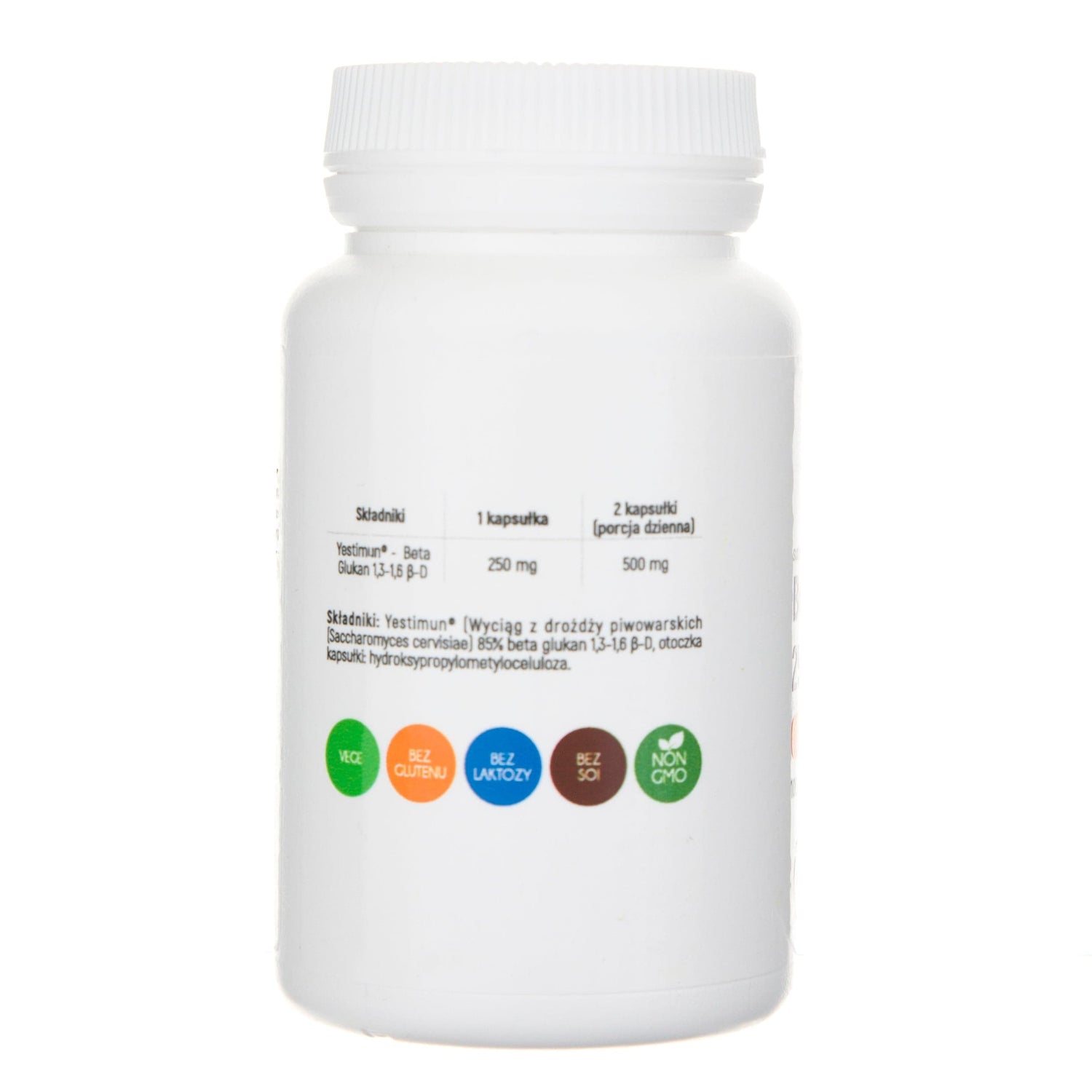 Beta Glucan 1,3-1,6 β-D vegetarisk kapsel kosttilskud fra Aliness. Indeholder Yestimun ® - Betaglukan. Yestimun ® Beta-Glucan er en helt naturlig og ren ingrediens uden tilsætningsstoffer. Den består udelukkende af ølgær (100% Saccharomyces cerevisiae).