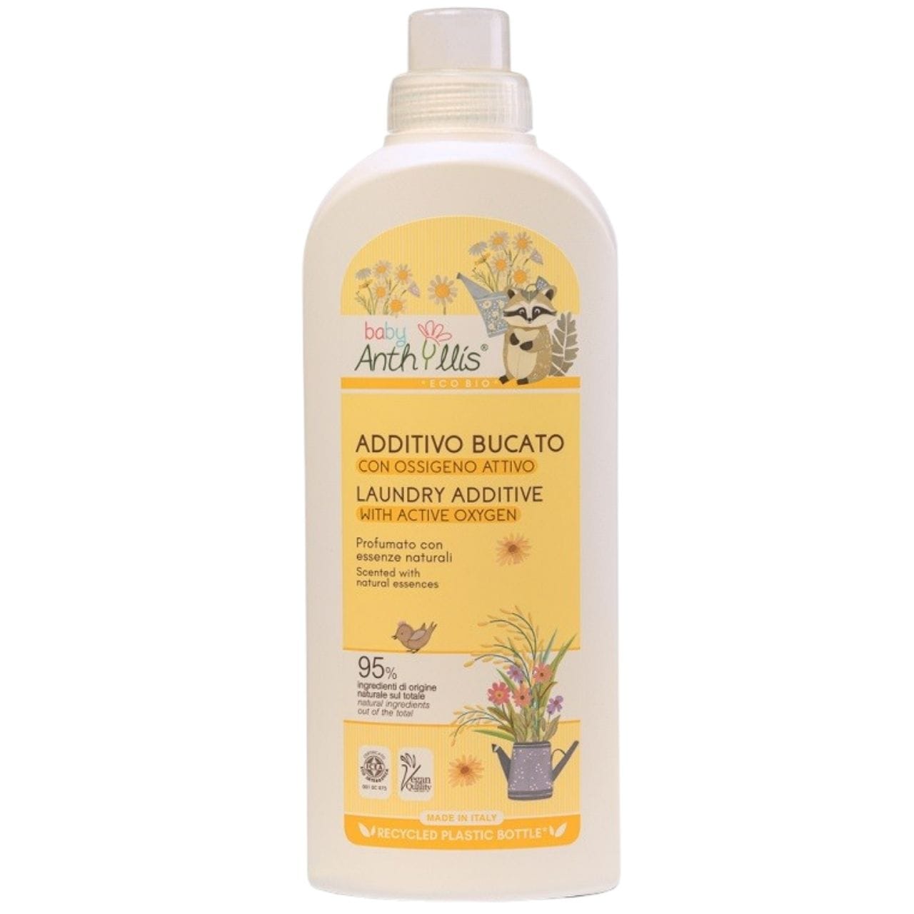 Anthyllis Baby er et certificeret økologisk vaskemiddel med aktivt ilt ,, der er specielt udviklet til at fjerne pletter fra børnetøj. Formlen , med 95 % naturlige ingredienser , fjerner effektivt selv genstridige mad- , græs- og mudderpletter fra både hvide og farvede tekstiler .