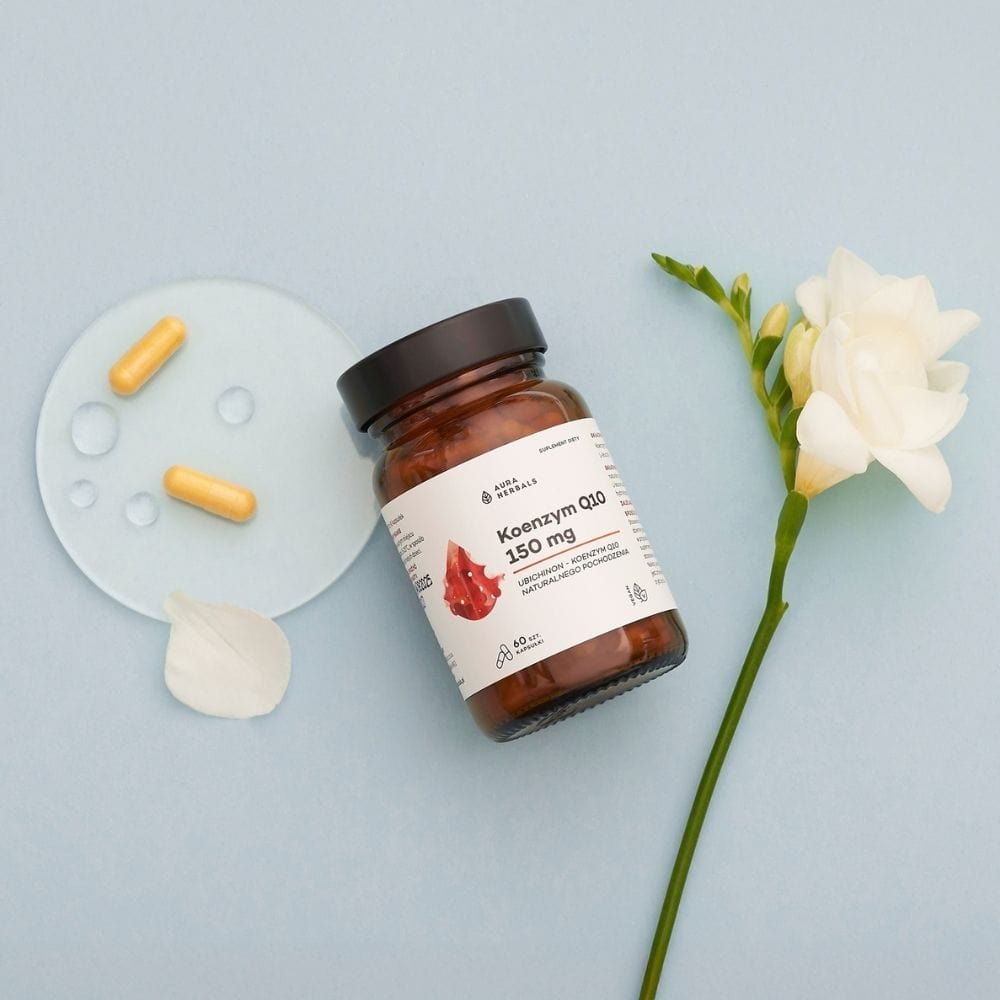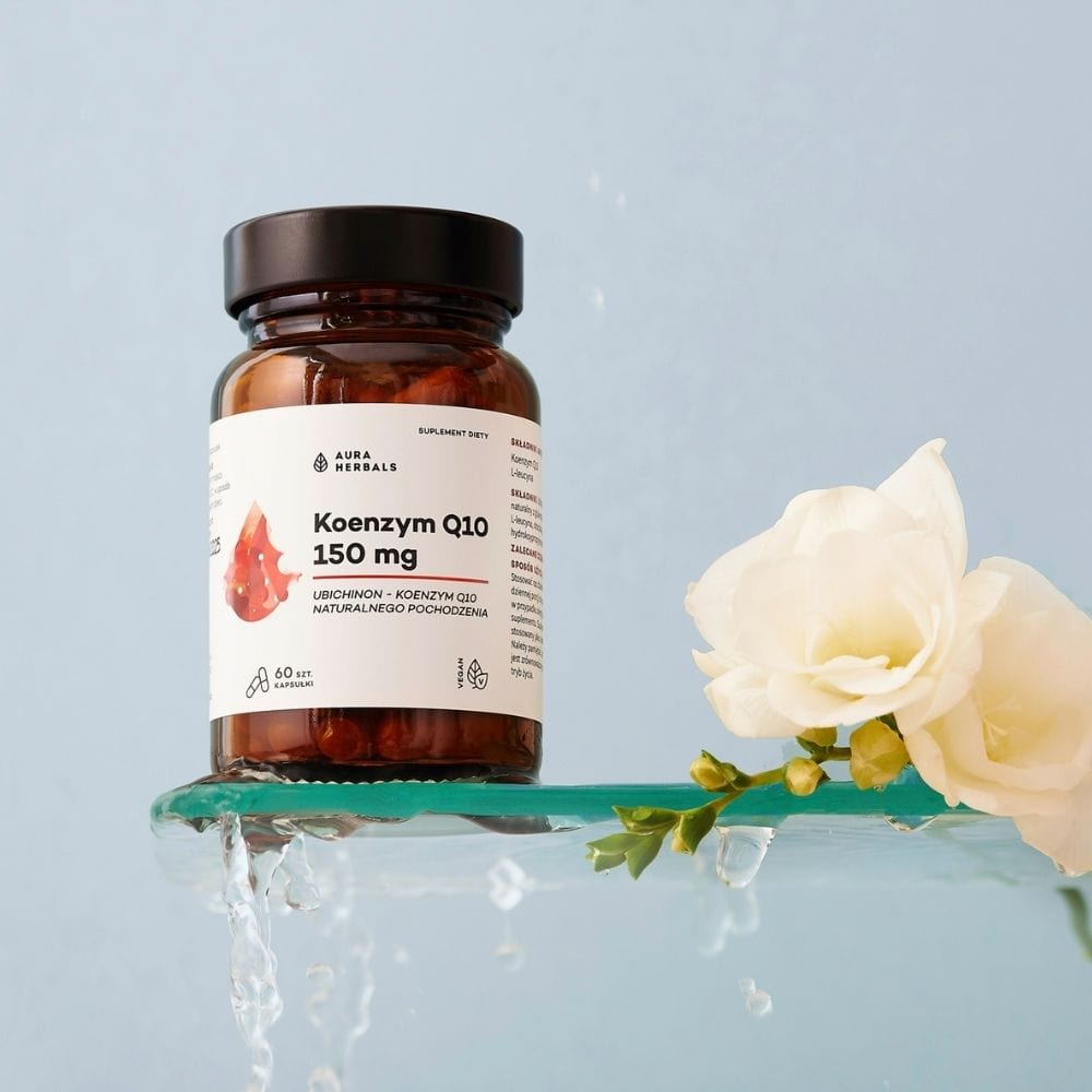 Aura Herbals Coenzym Q10 er et kosttilskud i vegetabilske kapsler. Det indeholder naturligt coenzym Q10 (ubiquinon) fra majsglukose. Hver kapsel indeholder 150 mg coenzym Q10.