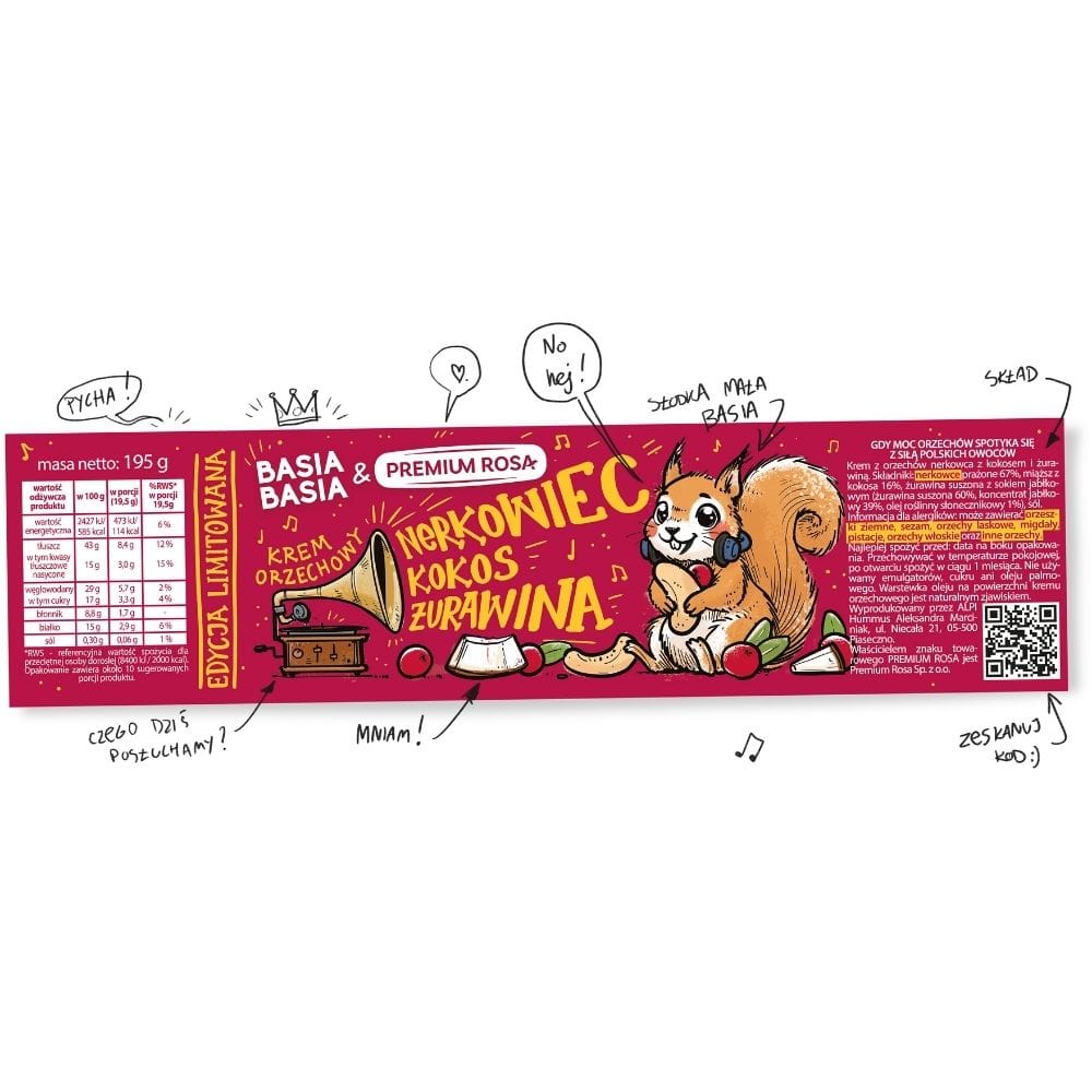 Alpi BasiaBasia Nut Cream er en nøje udvalgt blanding af ristede cashewnødder med et eksotisk strejf af kokos og en let syrlighed fra tranebær. Det høje indhold af cashewnødder (67%) garanterer en intens nøddesmag og en fyldig konsistens. Fraværet af palmeolie, kunstige farvestoffer, konserveringsmidler og raffineret sukker gør det til et naturligt produkt af høj kvalitet.