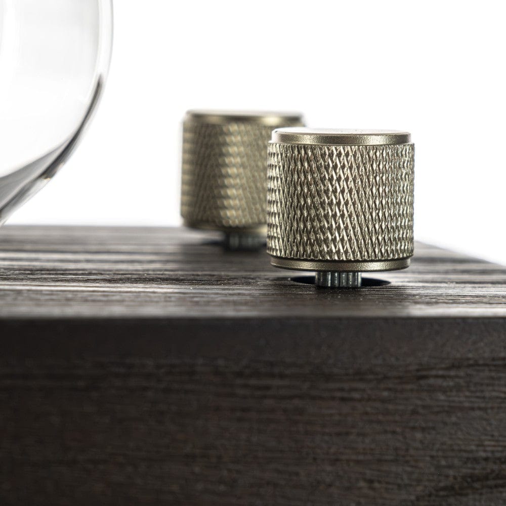 Dens minimalistiske form, lavet af fyrretræ, glas og metal, skaber en subtil, men slående helhed, der fanger øjet og samtidig tilfører rummet en hyggelig, naturlig accent . Den gennemsigtige flaske med en subtil dråbeform og den slanke pære skaber en harmonisk komposition, der er sikker på at fange øjet.