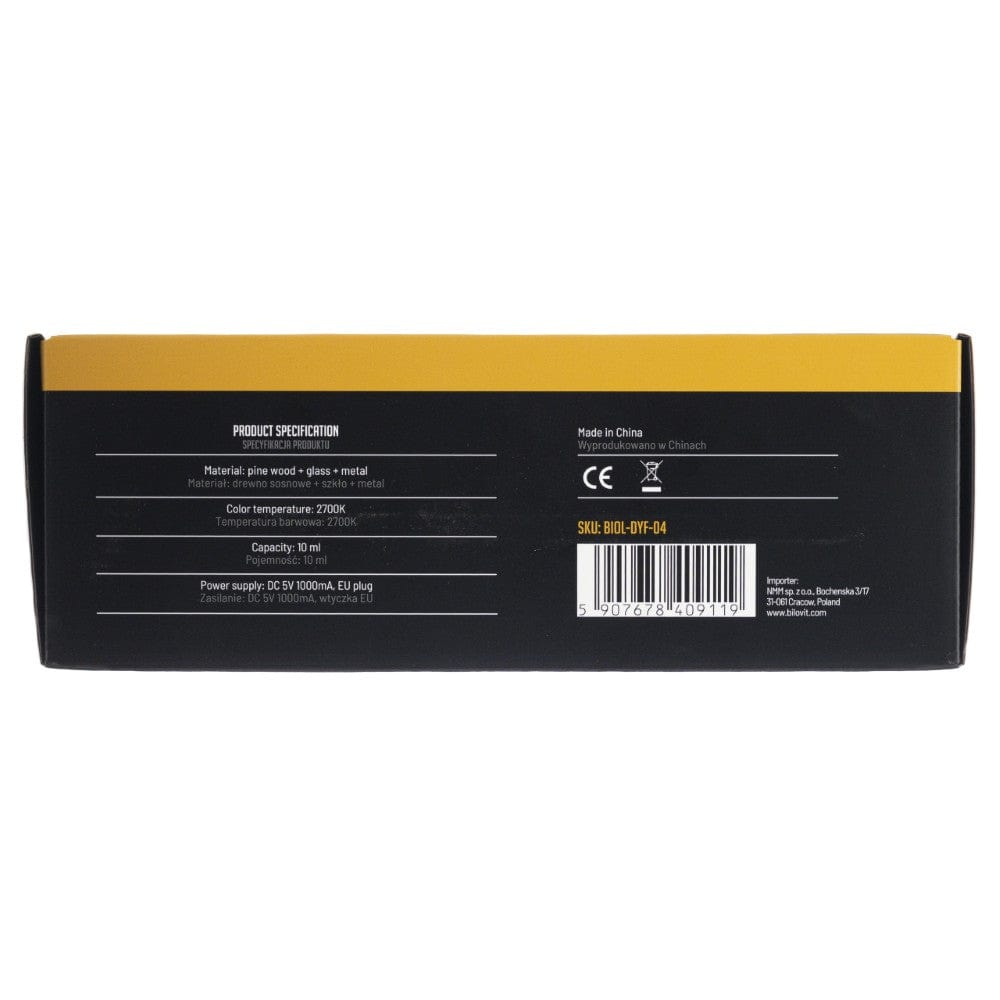 Den æteriske olieforstøver med en pære fra Bilovit er en elegant tilføjelse til ethvert interiør, der kombinerer funktionalitet med moderne design. Fremstillet af fyrretræ, glas og metal, fanger den øjet med sit diskrete udseende, og den justerbare pære skaber en varm, atmosfærisk stemning.