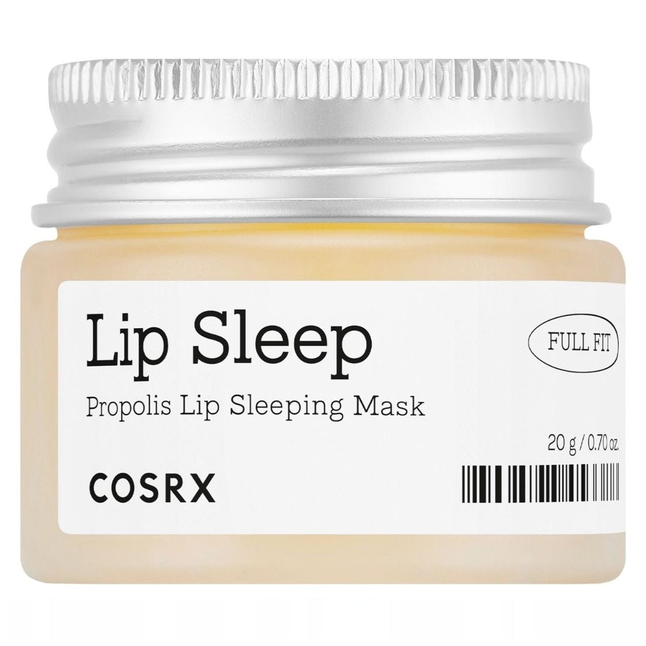 COSRX Full Fit Propolis Lip Sleeping Mask er en propolis-ekstrakt læbemaske . Den fugter og smører kraftigt, regenererer sprukne læber og udglatter. Den kan bruges som læbepomade om dagen eller som en nærende maske om natten.