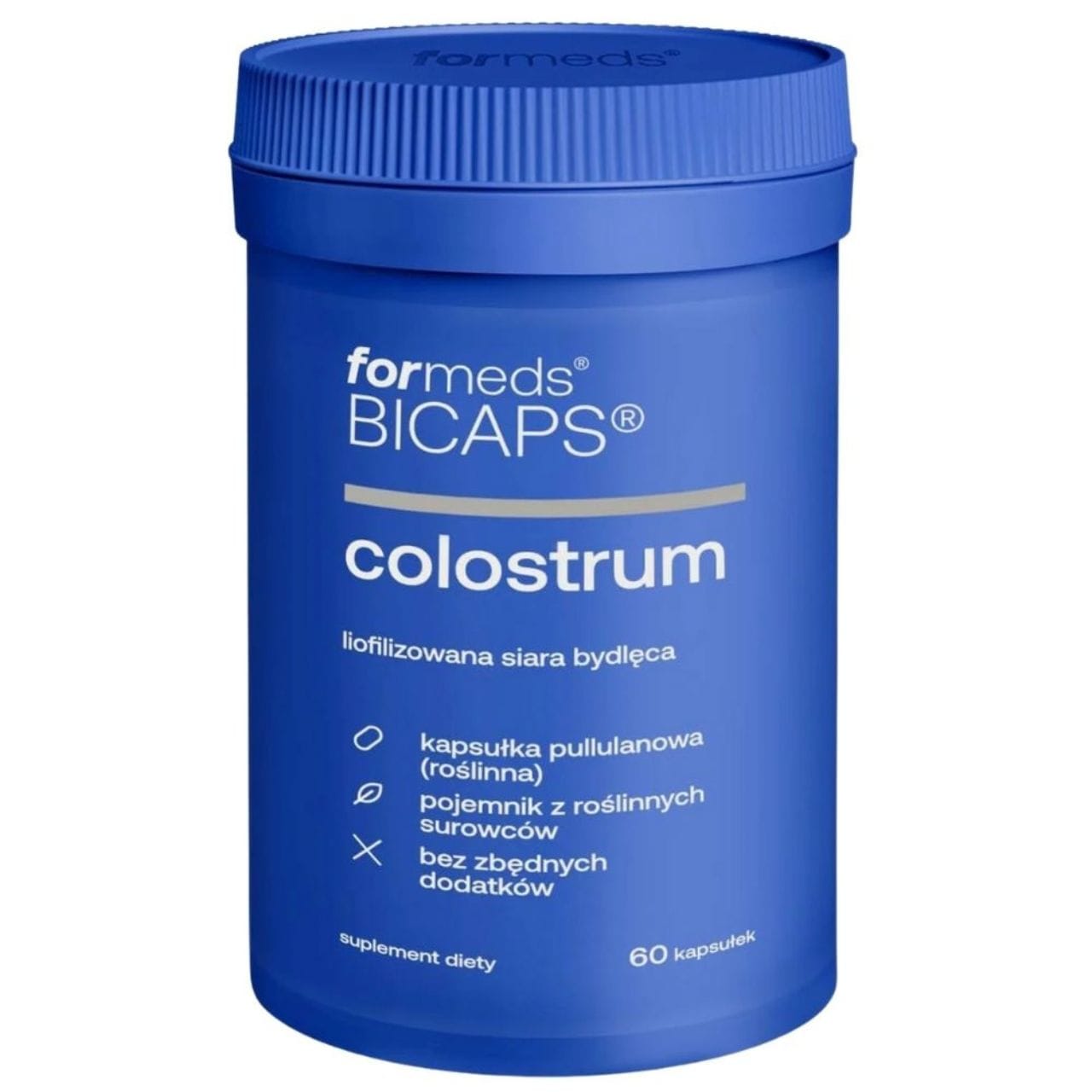 Formeds Bicaps Colostrum er et kosttilskud i kapselform. Det er en kilde til frysetørret bovint Colostrum, der er opnået inden for de første 24 timer efter fødslen. Dette sikrer, at det bevarer sin fulde stabilitet og biologiske aktivitet. Colostrum standardiseret for immunoglobuliner (30%), lactoferrin (2,5%) og polypeptider rig på prolin (2%).