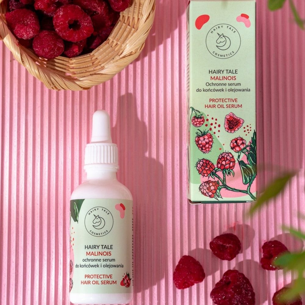 Hairy Tale Cosmetics Malinois Protective Serum er et multifunktionelt produkt til følsomt, afbleget og farvet hår. Det beskytter spidserne, er velegnet til oliering af håret og beskytter mod falmning af farven. Den lette formel baseret på naturlige silikonealternativer giver varme- og UV-beskyttelse. Produktet er ideelt til højporeret og middelporeret hår. Den forførende hindbærduft gør hver påføring behagelig.
