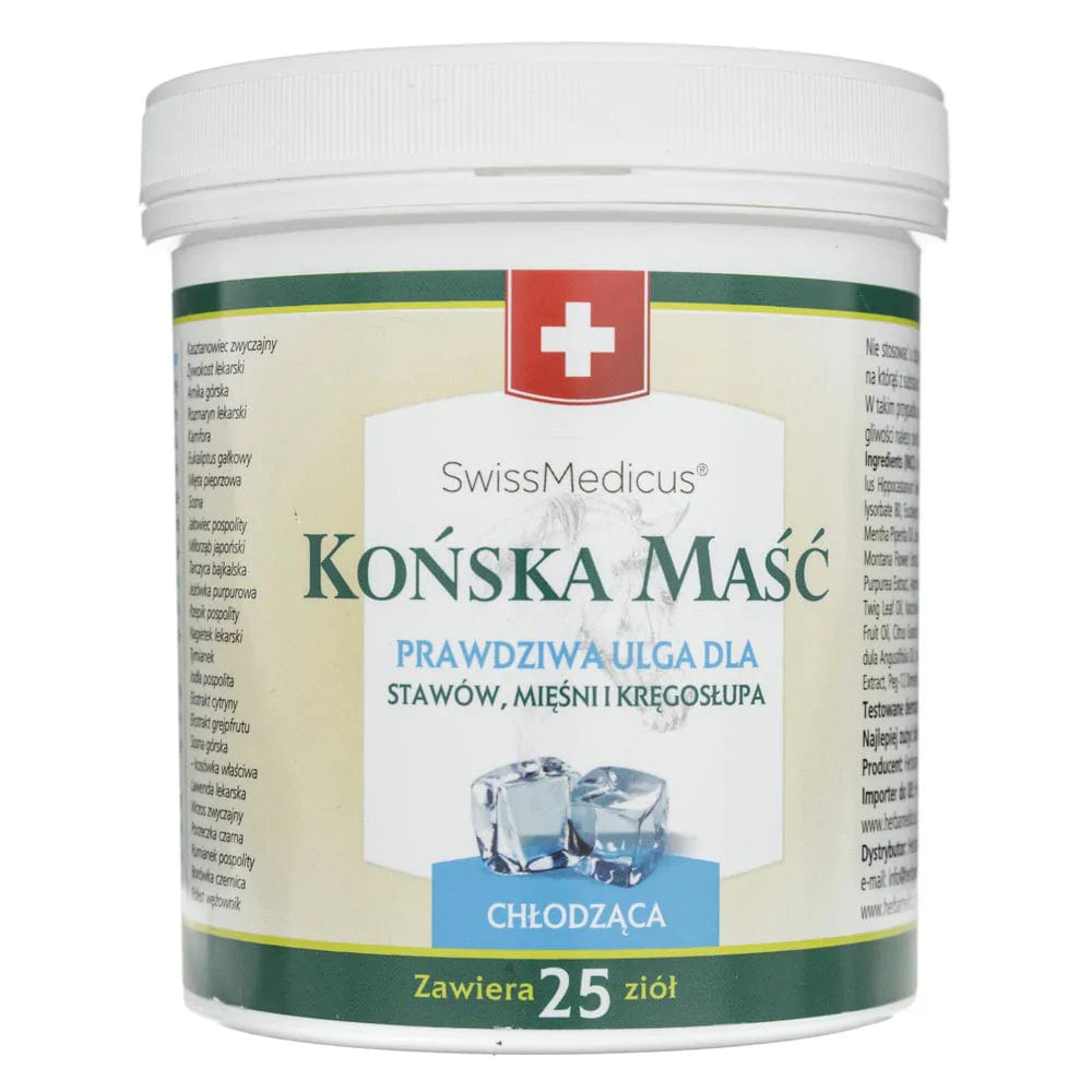 Hestesalve kølende salve giver lindring til led, ømme led og træt rygsøjle. Præparatet er udviklet på basis af en schweizisk opskrift og indeholder 25 urter og urteekstrakter . Kvaliteten garanteres af en formel, der kombinerer gennemprøvede stoffer med en kølende effekt.