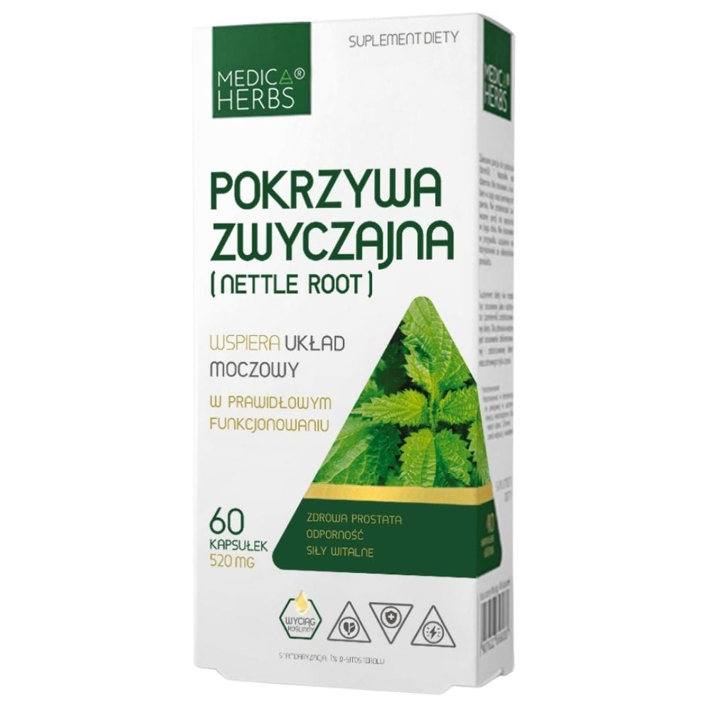 Medica Herbs Brændenælde (Brændenælderod) er et kosttilskud i kapsler. Kilde til Urtica dioica rodekstrakt , standardiseret til 1% β-sitosterol . Det giver 520 mg brændenælderodsekstrakt i 1 kapsel.