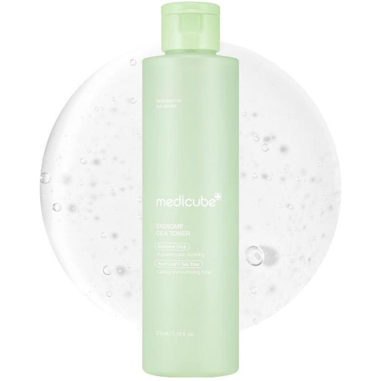 A soothing toner with 7 forms of Asian pennywort and probiotics! Medicube Exosome Cica Toner contains prized Madagascar Centella, panthenol and ectoine. Lactobacillus bioferment maintains the balance of the microbiome. A light formula ideal for patting in like a serum. 210 ml.