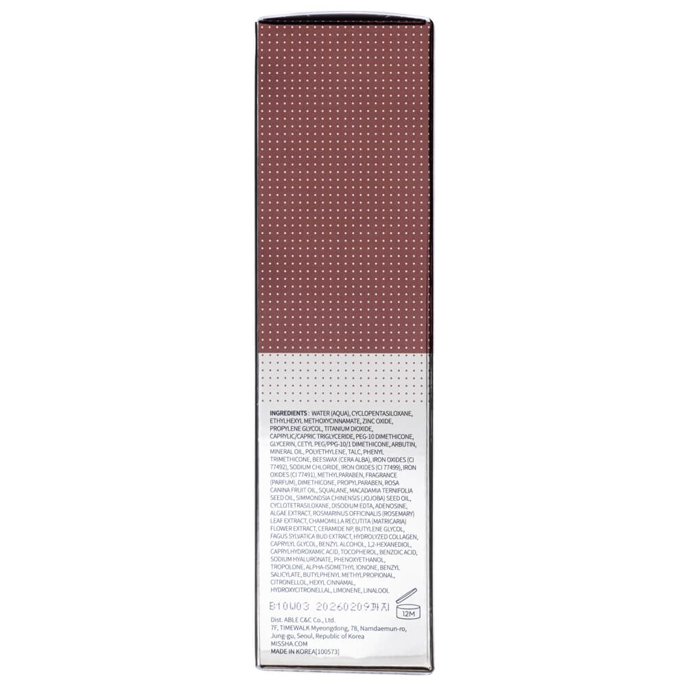 Water (Aqua), Cyclopentasiloxane, Ethylhexyl Methoxycinnamate, Zinc Oxide, Propylene Glycol, Titanium Dioxide, Caprylic/Capric Triglyceride, PEG-10 Dimethicone, Glycerin, Arbutin, Cetyl PEG/PPG-10/1 Dimethicone, Mineral Oil, Polyethylene, Talc, Beeswax (Cera Alba), Phenyl Trimethicone, Iron Oxides (CI 77492), Sodium Chloride, Iron Oxides (CI 77491), Iron Oxides (CI 77499), Fragrance, Methylparaben, Dimethicone, Macadamia Ternifolia Seed Oil, Propylparaben, Rosa Canina Fruit Oil, Simmondsia Chinensis (Jojoba) Seed Oil, Squalane, Disodium EDTA, Adenosine, Butylene Glycol, Ceramide NP, Fagus Sylvatica Bud Extract, Hydrolyzed Collagen, Chamomilla Recutita (Matricaria) Flower Extract, Hizikia Fusiforme Extract, Laminaria Japonica Extract, Rosmarinus Officinalis (Rosemary) Leaf Extract, Caprylyl Glycol, Benzyl Alcohol,1,2-Hexanediol, Caprylhydroxamic Acid, Sodium Hyaluronate, Phenoxyethanol, Benzoic Acid, Tropolone, Alpha-Isomethyl Ionone, Benzyl Salicylate, Citronellol, Limonene, Hexyl Cinnamal, Hydroxycitronellal, Linalool.