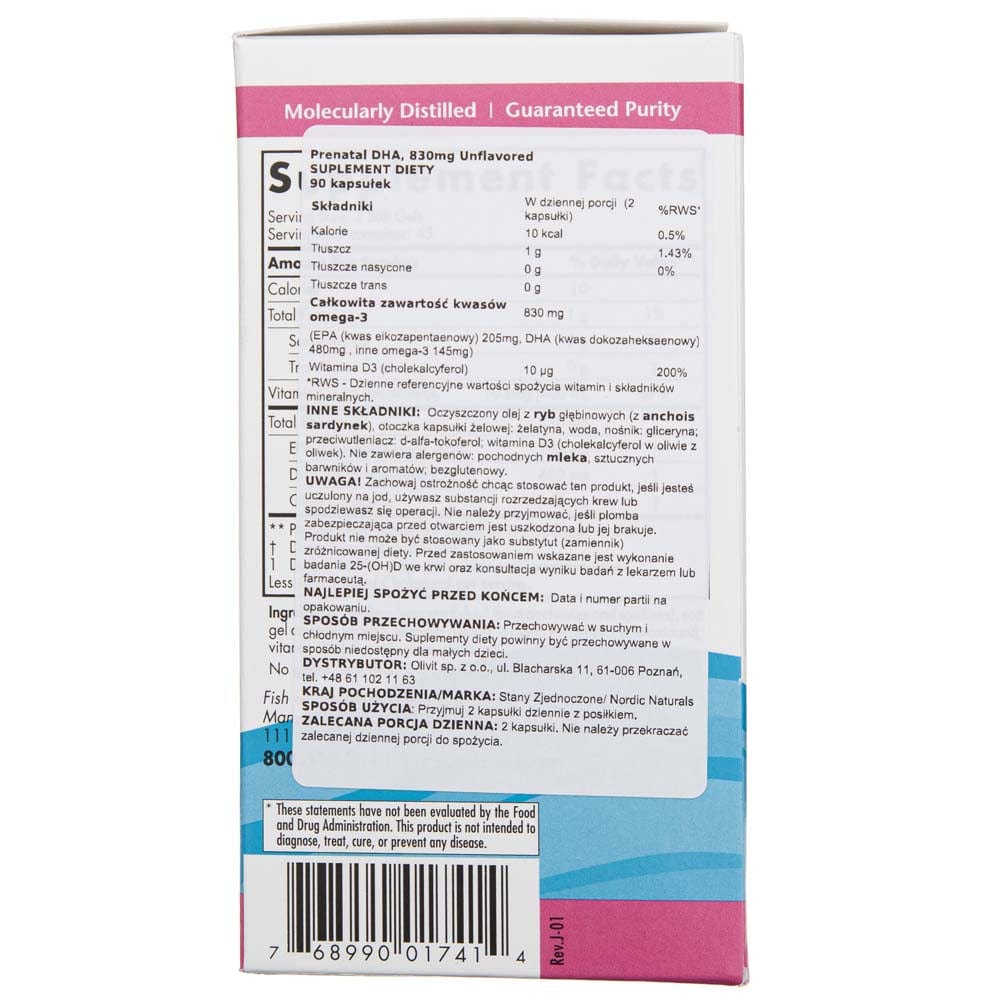 Nordic Naturals Prenatal DHA, uden smag 830 mg - 90 bløde kapsler
