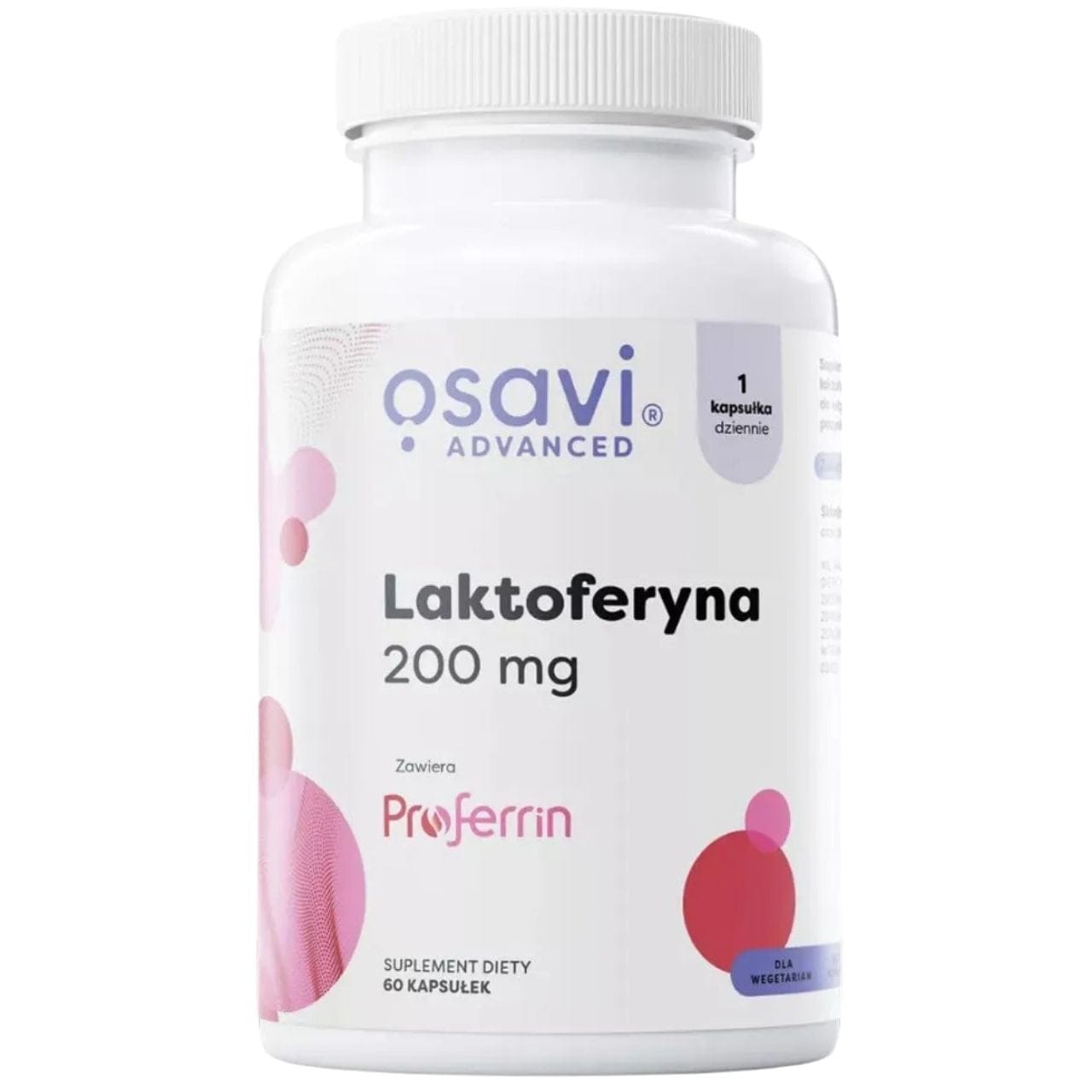 Osavi Lactoferrin 200 mg is a dietary supplement in vegetarian capsules containing 200 mg of Proferrin® lactoferrin per serving. Lactoferrin is a glycoprotein from the transferrin family found naturally in mammalian milk. The product also contains inulin (a prebiotic). HPMC capsule. Pack of 60 capsules = 60 days of use. Contains milk and lactose. Gluten-free, soy-free, sugar-free and GMO-free. Suitable for a keto diet.