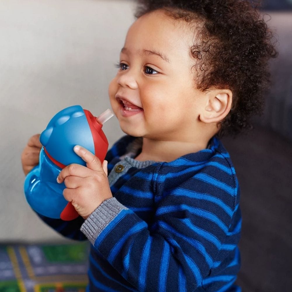 Koppens ergonomiske håndtag har et specielt design, der er tilpasset små hænder . Det giver dit barn mulighed for at holde sikkert på koppen, hvilket understøtter udviklingen af hånd-mund-koordination og opmuntrer til uafhængighed. Den bløde og fleksible st RAW er skånsom mod følsomt tandkød, og sikrer komfort, mens der drikkes.