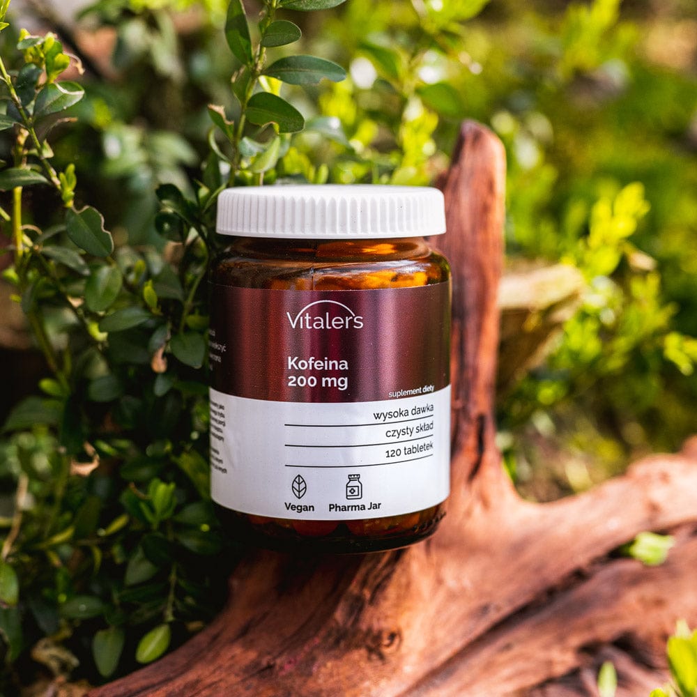 Et vegansk kosttilskud i tabletter, der indeholder 200 mg koffein, værdsat for sine stimulerende virkninger. Vitaler's Koffein er en fremragende erstatning for traditionel kaffe.