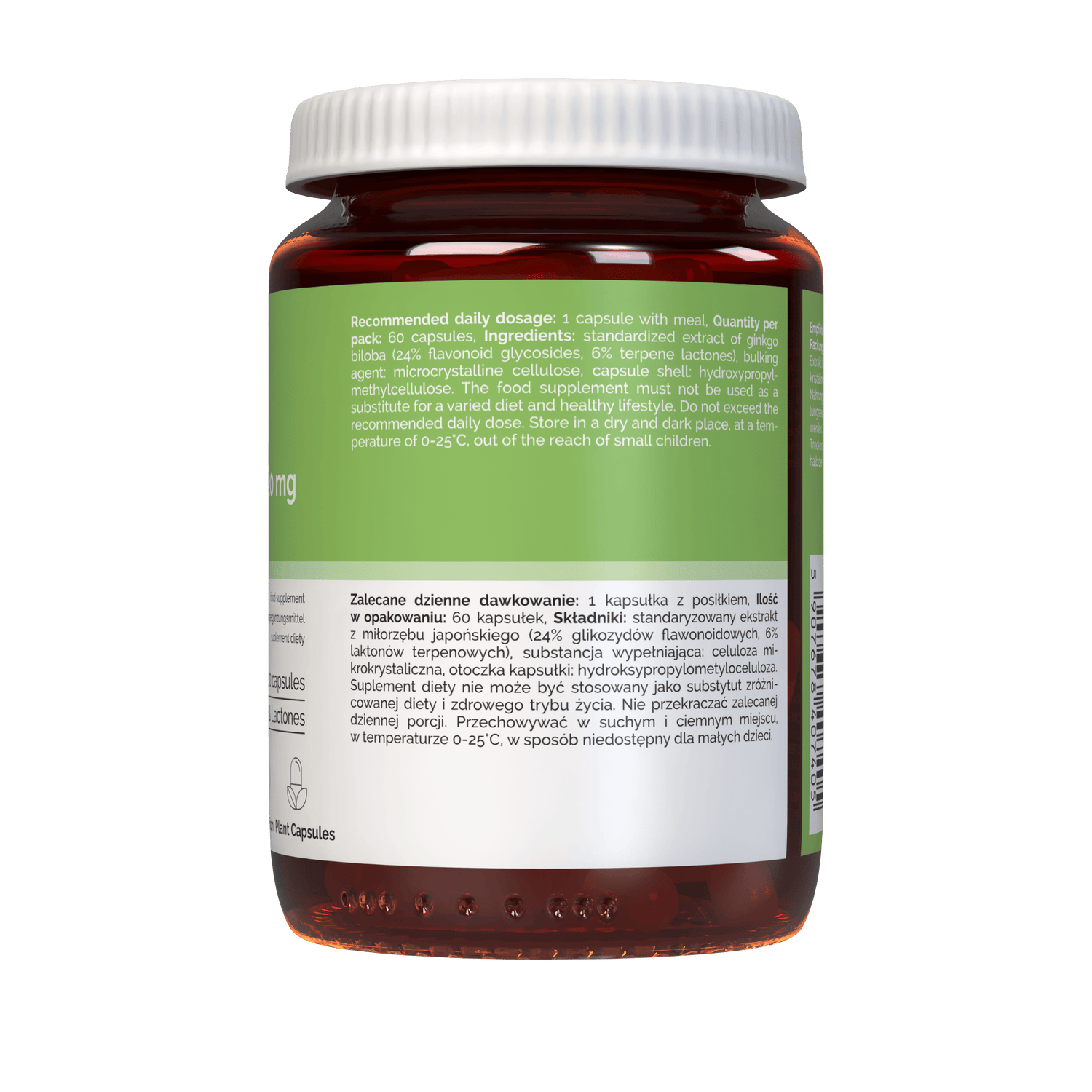 Standardiseret ekstrakt af ginkgo biloba ( 24 % flavonoidglykosider , 6 % terpenlactoner ) , Fyldstof: mikrokrystallinsk cellulose , kapselhylster ( hydroxypropylmethylcellulose ) .