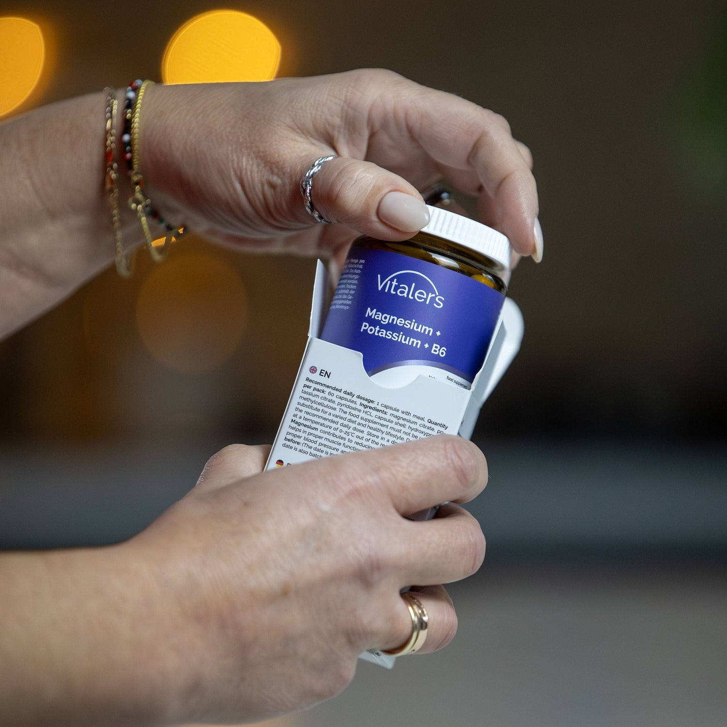 Vitaler's Magnesium + Kalium + B6 er et kosttilskud i kapselform. Et kompleks af kalium og magnesium i form af citrater med tilsat vitamin B6.
