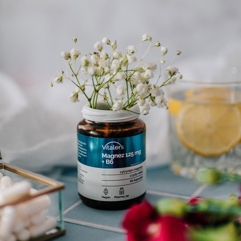 Vitaler's Magnesium 125 mg + B6 er et kosttilskud, der opfylder retningslinjerne for en vegansk og vegetarisk kost. Takket være vitamin B6 i produktet, øges optagelsen af magnesium fra mave-tarmkanalen med 20-40%.