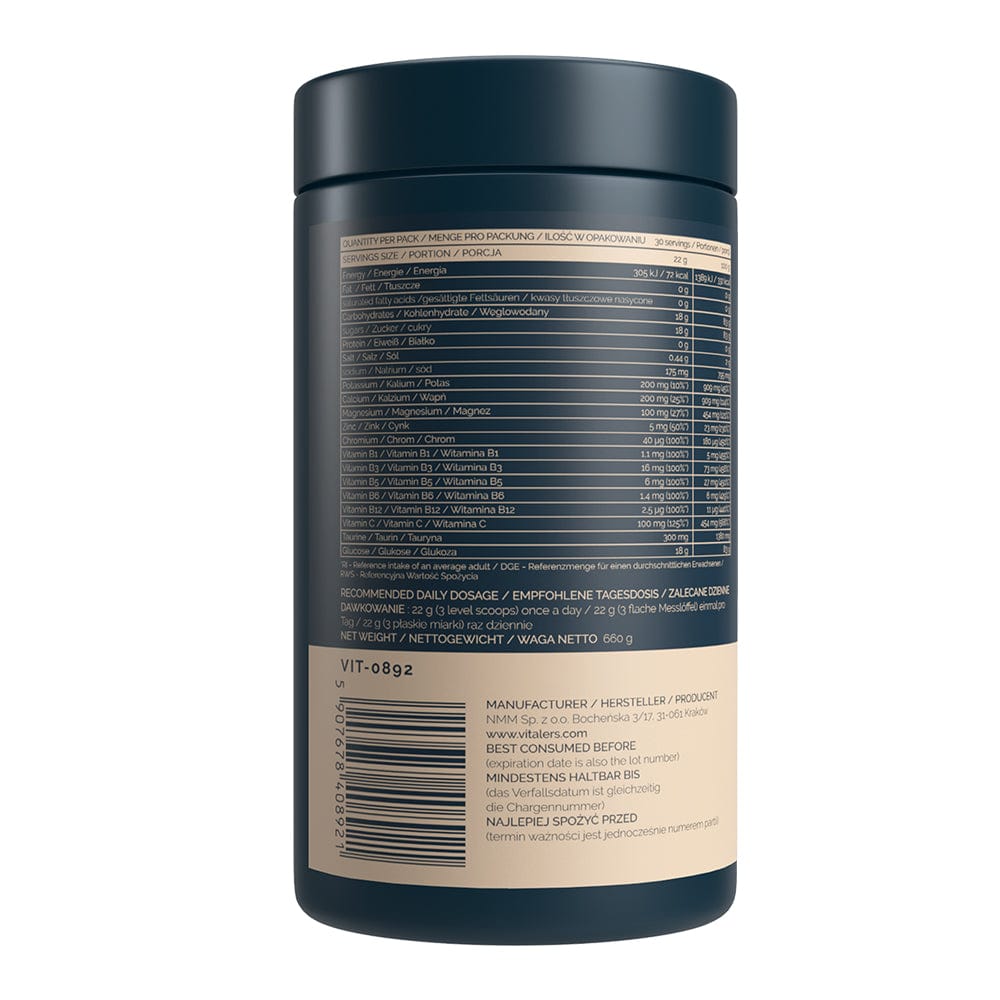 Vitaler's Sport Isotonic er et kosttilskud i pulverform. Kilde til vigtige elektrolytter og vitaminkompleks i meget biotilgængelige former. Indeholder sukker og sødestoffer.