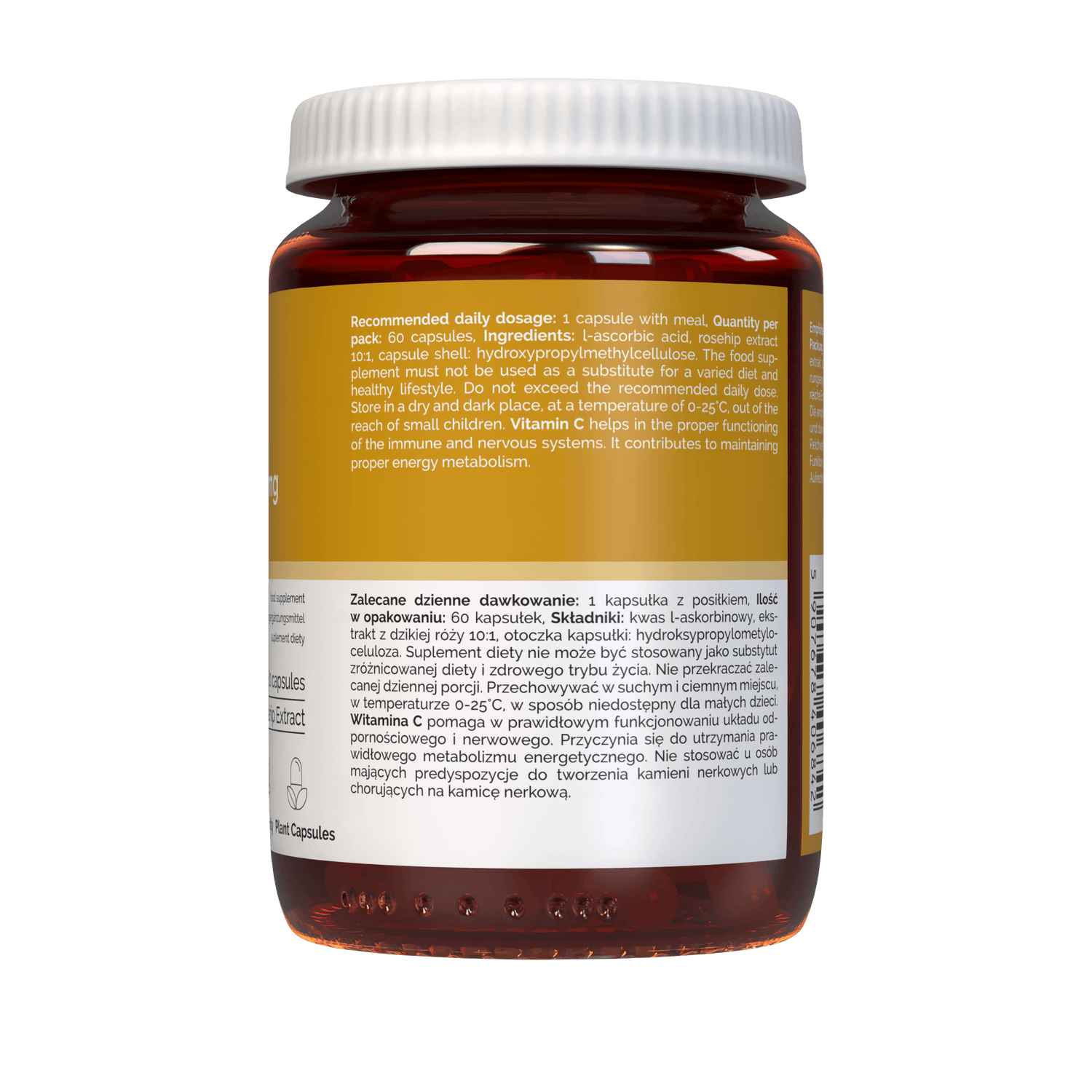 Vitamin C is one of the most common and most frequently supplemented vitamins. In order for the body to function properly , it is necessary to keep it at a constant level , which applies to both adults and the youngest. For children , vitamin C is particularly important for immunity or motor system development. Sources particularly rich in this indispensable substance include all kinds of leafy vegetables , pickles or citrus fruits. In the event that consumption of these is somewhat difficult or we are not sure whether we are providing an adequate dose of vitamin C to ourselves and our children , the best option is to reach for dietary supplements that will fully cover its needs. The solution to this is Vitaler's Vitamin C with Wild Rose! A daily dose of 1 capsule covers several times the daily requirement for the vitamin in an average adult. The package contains 60 doses of the product in the form of vegan capsules , which is Enough for two months of continuous supplementation.